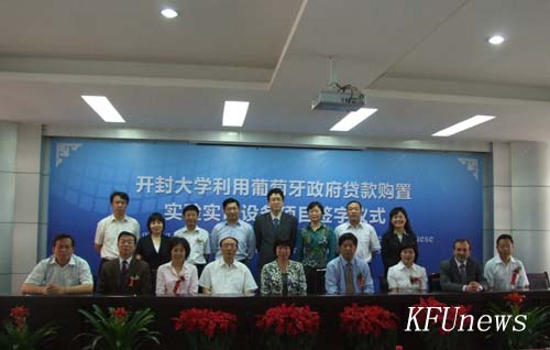 参加签字仪式的省市领导有:开封市人民政府正市长级干部朱丽萍,省财政厅外资处处长张惠,省财政厅外资处处长(调研员)李柏强,省发改委外资处处长李桓,省教育厅高教处副处长岳德胜,市财政局副局长孙国强,市发改委副主任方守成;葡方代表有:葡萄牙DEIBAR公司代表VITOR先生,北京金洲公司代表丁巍先生;采购代理方代表中国机械设备进出口公司耿学勤女士;校方代表党委书记莫华林,校长拜五四及全体校党委委员、校领导;365官网相关院(部)、行政部门负责人参加了签字仪式。签字仪式由副校长何世玲主持。