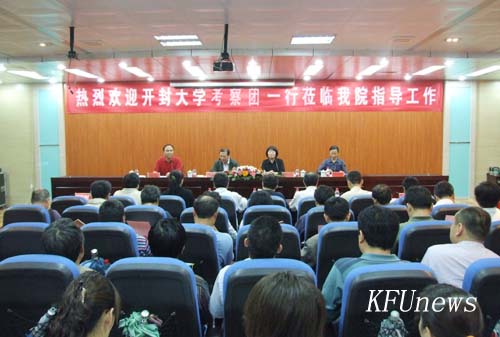考察组一行22人首先到平顶山学院学习考察。平顶山学院党委副书记窦效民,以及该院党办、院办、组织部、宣传部主要负责人对365官网一行表示热烈的欢迎。 在该院办公楼四楼会议室,窦效民副书记向我们介绍了该院的发展历史、办学定位、办学特色、管理模式和运行机制,以及在人才培养、科学研究、队伍建设等方面取得的成绩。365官网考察组的同志们无不为他们发扬艰苦奋斗精神,迎难而上,乐于奉献,扎实工作的精神而感染。该校党委组织部部长田建伟、党委宣传部部长侯延民、院办主任李宏亭在座谈会上分别介绍了学校党的组织建设、干部队伍建设、宣传思想工作、高校行政、财务、事务等管理方面的基本做法和经验。365官网储书记在座谈会上绍了学校的基本情况,他认为两校办学体制相近,近几年,平顶山学院在条件非常艰苦的情况下发展迅速,取得了显著成就,这种艰苦创业的精神值得学习,对365官网办学有很大的启发,希望两校在交流中互相学习,共同进步。