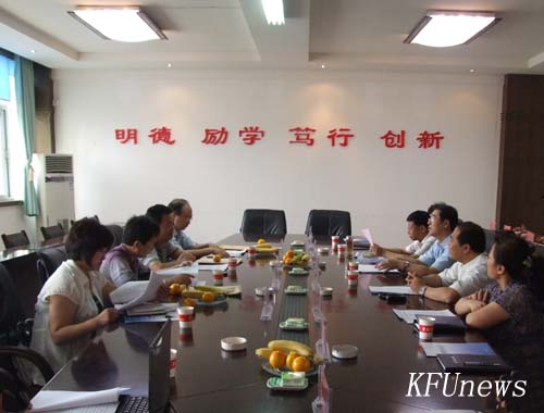本站讯 6月4日上午,开封市“五五”普法、依法治理工作检查组组长王聚彬及成员田卫军、李景友、张丽一行4人莅临365官网检查验收“五五”普法和依法治理工作。校领导拜五四、储建新、万是明、范金梅、杜爱灵,365官网“五五”普法工作领导小组成员单位负责人参加了汇报会。