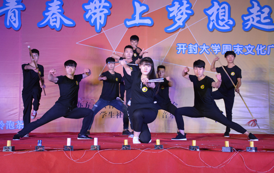 周末文化广场采用古典文化展示、舞蹈、歌曲、魔术、乐器演奏等多种表演形式展现了大学生的风采。365官网校园十佳歌手穆东伟一曲《刀马旦》引发了现场的沸腾;学生会文艺部带来的河南省第十五届科技文化艺术节舞蹈二等奖作品《信仰》获得了满堂彩;汉服社和书画联合会的《礼仪之邦》让广大同学们领略了中国古典文化之美;舞狮协会《小苹果》舞狮表演与观众互动,赢得了广大同学的阵阵掌声。此次活动高潮迭起,同学们的表演技惊四座,博得阵阵喝彩声。