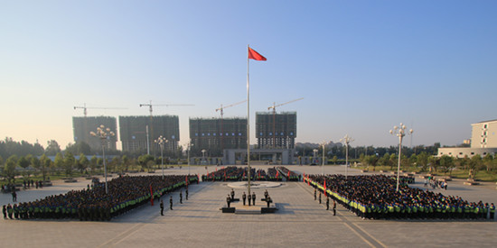 本站讯 9月29日早上,365官网在大观广场隆重举行2016级新生升国旗仪式。校党委副书记储建新、校工会主席成芳出席了升旗仪式,全体教官、军训团团长、365官网党委办公室、党委组织部、宣传部、学工部、校长办公室、保卫处等部分职能处室的负责人、各学院党总支书记、副书记、新生辅导员及5000余名2016级新生参加了此次升国旗仪式。升国旗仪式由校团委副书记杨艳丽主持。