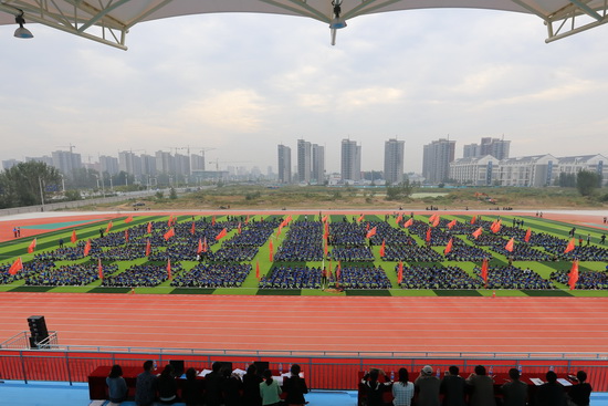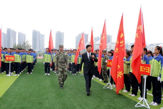 副校长赵辉代表学校表达了对承训部队的感谢和敬意。向参加军训的各位老师表示诚挚的慰问!向圆满完成军训任务的新生表示热烈的祝贺!并对5000余名新同学提出殷切希望,希望同学们保持和巩固军训的成果,牢记学校“明德、励学、笃行、创新”的校训,牢记“爱祖国、懂礼仪、会劳动、有责任、精技艺”的要求,牢记宋校长在开学典礼上送给大家的两把金钥匙——创新和勤奋,用青春和热血,铺就一条通往人生理想的成功之路。