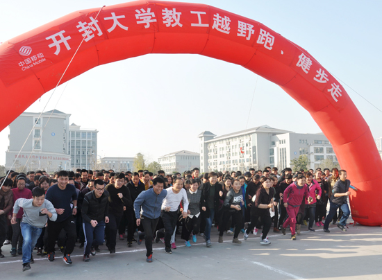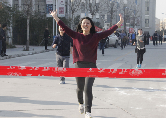 校党委书记张新梅为教职工越野跑鸣枪发令。广大教职工们积极参与,奋力拼搏,表现出顽强的意志,教师们奔跑的身姿成了校园里一道美丽的风景线。经过激烈的角逐,土木建筑工程学院教师刘封获得越野跑男子组冠军,功能材料研究中心教师王丽获得女子组冠军。