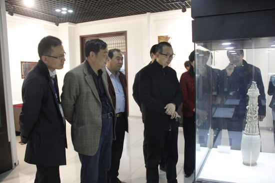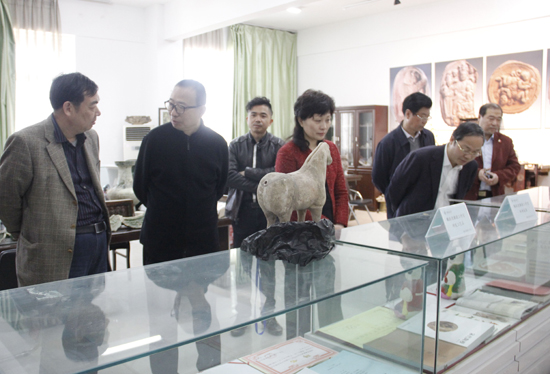 本站讯 4月1日,中国民协主席潘鲁生、市政协副主席赵洁、开封市文联、开封市文产办等领导莅临365官网大观博物馆参观调研。365官网党委副书记储建新及党委宣传部、艺术设计学院相关负责人一同参观。