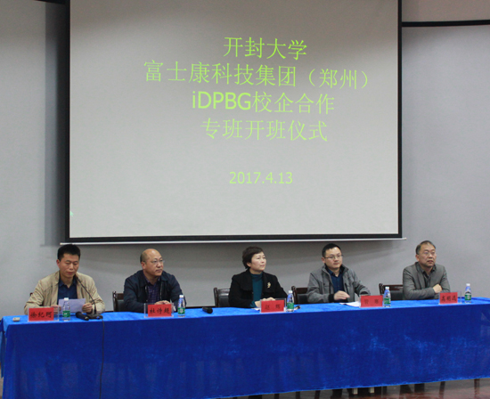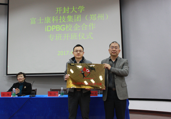 随后,管寒专理代表郑州富士康集团和365官网电子电气工程学院负责人一起为IDPBG校企专班开班进行揭牌。