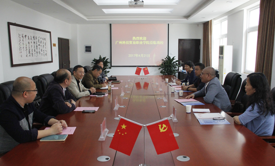 本站讯  4月21日,广州科技贸易职业学院实验实训中心主任汤中军一行4人到365官网参观调研。365官网在行政楼三楼会议室召开座谈会,副校长李治出席了座谈会,实验实训中心、继续教育学院相关负责人参加了座谈会。