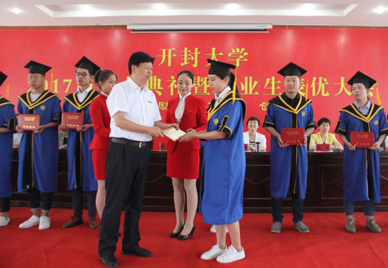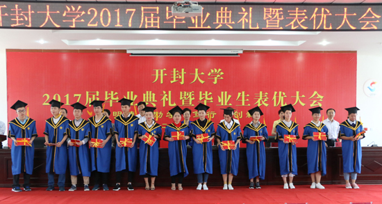 典礼在雄壮激昂的国歌声中拉开帷幕。副校长赵辉宣读365英国上市集团官网2017届毕业生资格审查结果,3842名毕业生符合毕业条件,顺利毕业。工会主席成芳宣读了2017届河南省及365英国上市集团官网优秀毕业生评优结果,共评出118名省级优秀毕业生、595名校级优秀毕业生及585名三好学生和63名校级优秀学生干部。校领导为获奖代表颁发荣誉证书。