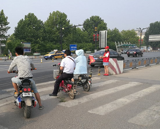 活动中,志愿者们不畏高温酷暑,协助交警指挥交通,对过往行人和非机动车的不文明交通行为动之以情、晓之以理,耐心劝说进行劝导,带动和影响身边的市民遵守交通规则,遇到有老人过斑马线时他们立即上前帮助。
