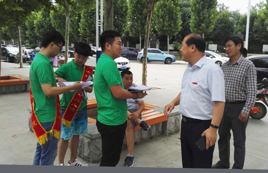 本站讯 7月1日,校党委副书记储建新及国际教育学院负责人一行五人前往项城看望并慰问365官网暑期社会实践环保宣传调研小分队的志愿者。
