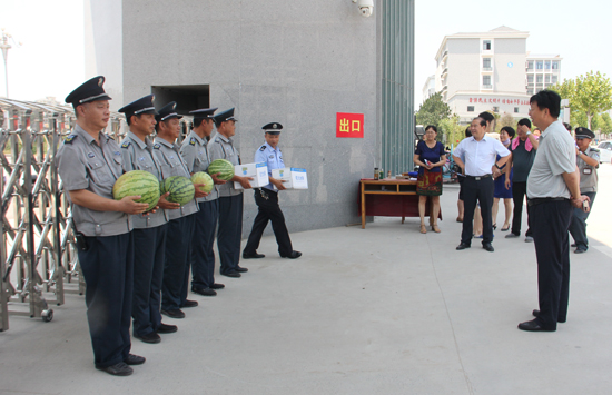校长宋志敏一行先后来到基建施工现场、门卫值班室、招生办公室、后勤服务中心等地,亲切慰问暑期仍坚守岗位的基建、保卫、招生、后勤等教职员工,并送上防暑降温物品。宋校长对大家牺牲暑假休息时间坚守岗位表示感谢,并希望大家在做好暑期工作的同时,一定要注意防暑降温,劳逸结合,保重身体。