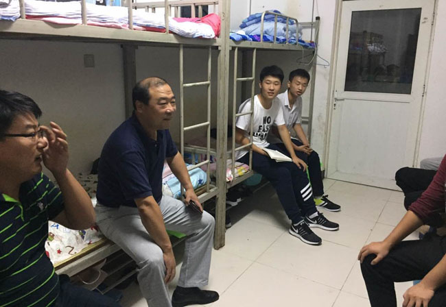 当晚,储书记、成主席及学生工作部、后勤服务中心、保卫处等相关部门负责人深入学生宿舍走访慰问,就学生返校、宿舍管理、宿舍周边环境、安全等问题进行排查。在4号楼201室,储书记与2017级土木工程(本科)班新生促膝长谈,询问学生到校学习生活情况,鼓励同学在大学期间努力学习,增长才干,做优秀大学生。