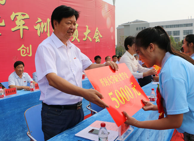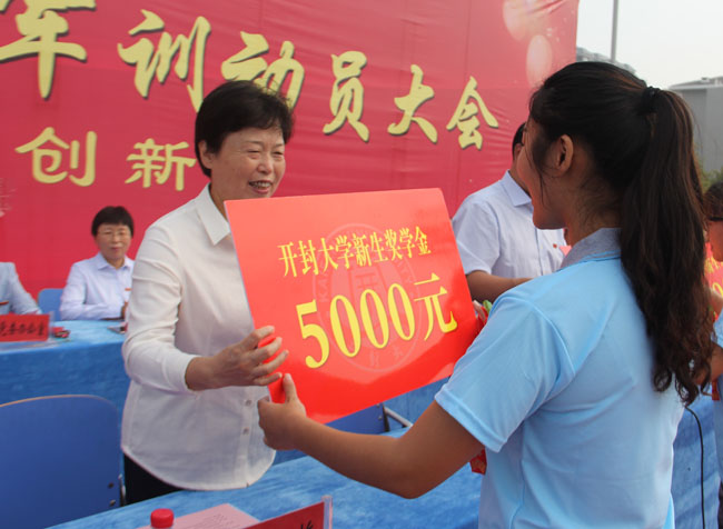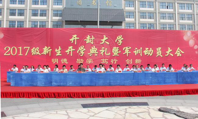 校长宋志敏讲话。宋校长代表学校向来自全国各地的5570名新同学的到来表示热烈的欢迎和衷心的祝贺!向承担本次军训任务的教官们表示衷心的感谢!宋校长向新同学简要介绍了开封的历史文化,回顾了365官网37年来走过的闪光历程、取得的光辉成就以及365官网目前的发展现状。