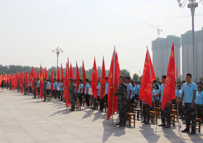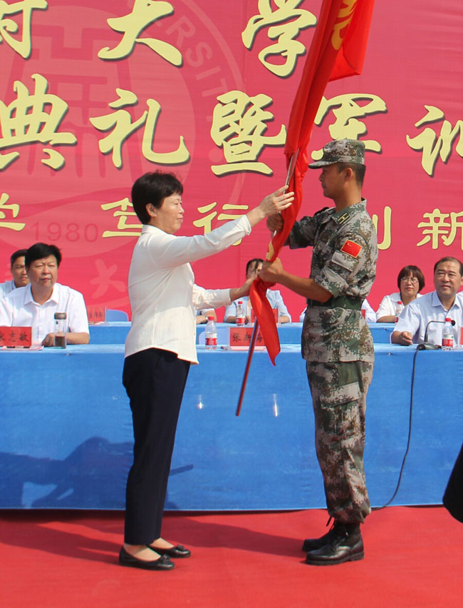 校党委书记张新梅向军训团授旗,并宣布365英国上市集团官网2017级新生军训开营!