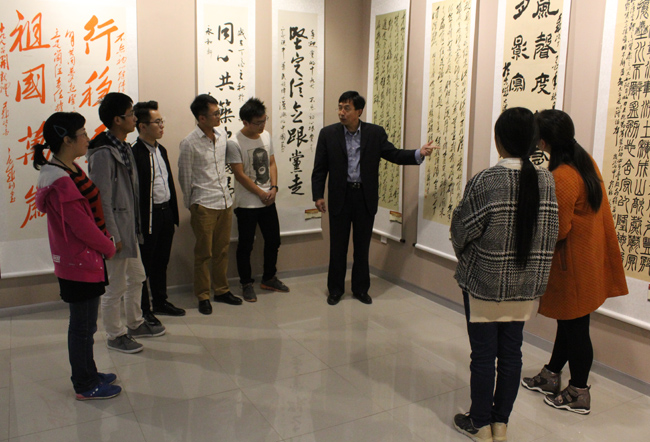 党的十八大召开以来的五年,是我国改革开放事业全面发展的五年,中国特色社会主义建设取得了辉煌成就。本次展览得到了开封市总工会、开封市文联以及兄弟院校的大力支持与配合,365官网领导及师生积极参与,此次展出的70余件书画作品,主旋律高扬,正能量汇聚,内容丰富、形式多样、风格独具,彰显了文化自信,展示了靓丽风采。参展作者将浓浓爱国情以及对更加美好生活的向往凝结笔端,将建设家乡、建设学校的满腔热忱转化为翰墨丹青,铺陈渲染,写意抒情,施展最佳才艺。他们呈现的是潜心创作的艺术作品,展现的是奋发进取的精神风貌,抒发的是爱校荣校的感人情怀,弘扬的是勇于创新、敢于担当的意志品质。参观者从中不仅能获得美好的艺术享受,还能感受到一种催人向上的力量。