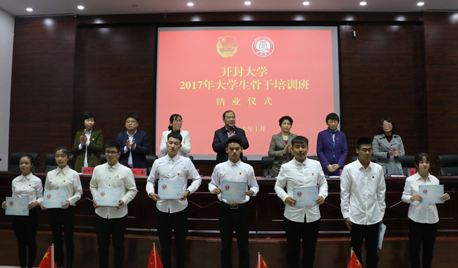 仪式上,党委办公室主任陈岩宣读了《关于公布2017年大学生骨干培训班学员准予结业暨对优秀学员进行表彰的决定》。本期培训班共有151名同学参加,经过为期1个多月的培训,最终,139名同学通过了考试和各项考核,顺利结业,其中24名学生考核成绩突出,被评为“优秀学员”荣誉称号。校领导为学员颁发结业证书和优秀学员证书。