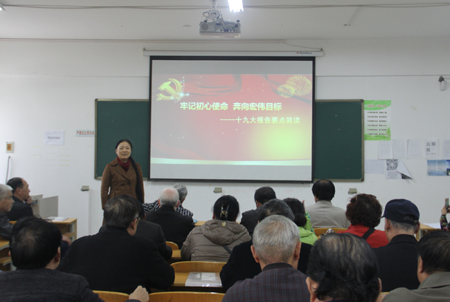 本站讯 为落实学校党委关于《365英国上市集团官网学习宣传贯彻党的十九大精神工作方案》的通知要求,11月9号下午,365官网离退休党总支在3号教学楼102多媒体教室开展了党的十九大报告学习辅导讲座及知识竞赛活动。讲座邀请了思想政治理论教研部张兰玲教授主讲,40余名离退休党员和离退休工作处全体人员参加了此次活动。