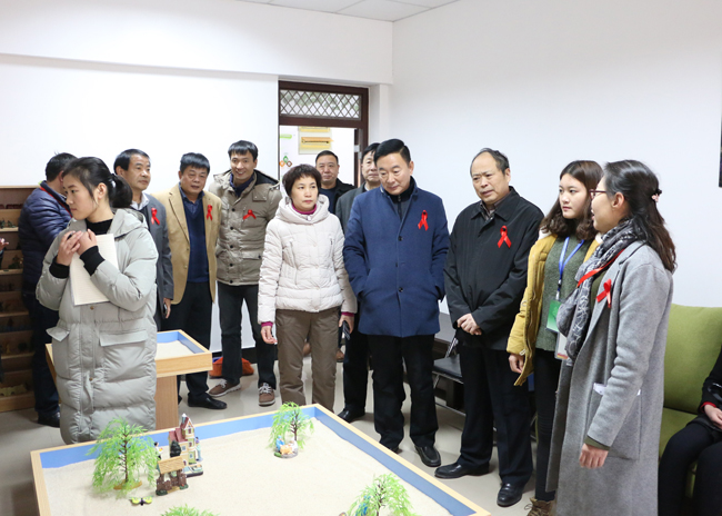 随后,张志超一行前往365官网国际教育学院一楼报告厅听取了市疾病预防控制中心孙洁的《艾滋病—流行与控制》讲座,观看了独幕剧《背爱》和主题活动《野火游戏》、聆听了公益主题歌《拥抱你》,并参观了365官网“我爱我”青春健康教育同伴社。