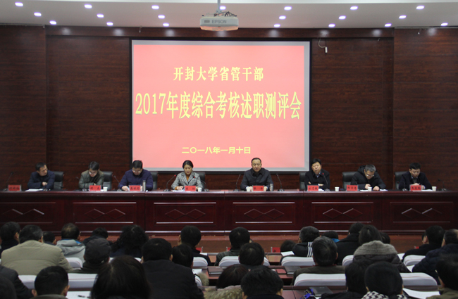 本站讯 1月10日上午,以河南省教育厅副巡视员张涛为组长的河南省委第七考核组一行6人对365官网省管干部进行2017年度考核,考核测评会在行政楼一楼会议厅举行。365官网中层正职以上干部、教授、民主党派代表、教师代表和学生代表参加了会议。会议由校长宋志敏主持。