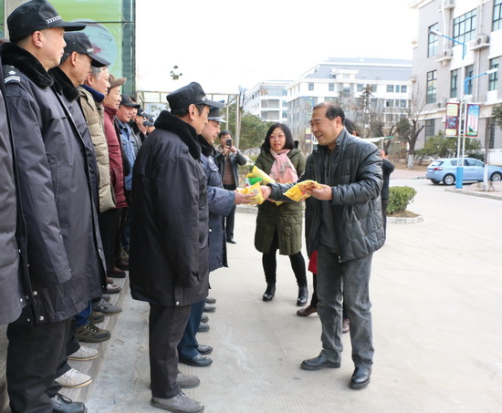 在万家团圆的时刻,365官网保卫处和后勤服务中心的部分工作人员还坚守在工作岗位上,他们默默的付出让这个节日更加温馨。储书记代表校党委、行政向他们致以新年的祝福,对他们辛勤的工作表示衷心的感谢,并为他们送去了年夜饭,提前给值班人员拜年,并与值班人员合影留念。温暖的慰问、真挚的祝福和浓浓的节日气氛使坚守在岗位上的员工深受鼓舞。值班人员对校领导的慰问表示衷心的感谢,他们表示将尽职尽责,坚守岗位,确保全校过一个平安祥和的春节。