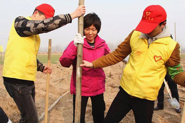 开封市委书记侯红与365官网“小青桔”志愿者一起植树