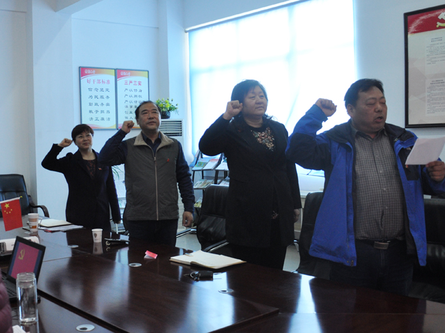 会上,全体党员一起重温了入党誓词,集体学习了李克强总理所作的政府工作报告,每位党员同志上交了3月份的党费,并过了一次集体政治生日。与会党员踊跃发言,畅谈了自己的入党感受。大家一致认为,成为一名共产党员是自己一生最大的荣幸,党员的先锋模范作用从来不是一句空话,需要实实在在的拼搏和奋斗。选择信仰不易,坚守信仰更不易,要用实际行动为党旗增彩。