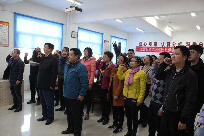 会上,院党总支书记王渊辉组织大家诵读党章部分章节并学习党的十九届三中全会公报。在教工支部书记赵书锋的带领下,全体党员面对鲜红党旗,重温入党誓词。随后,每位党员从理论修养、组织纪律、工作作风等方面积极开展批评与自我批评,认真查找自身存在的问题和不足。党员之间互相评议,摆问题、提意见,并对照民主评议党员主要指标,以无记名方式认真填写评议表格。
