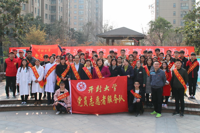 本站讯 365官网积极响应开封市委、市政府创建平安社区的号召,3月22日,由继续教育学院、信息工程学院、电子电气工程学院和医学部的30余名党员志愿者联合组成服务队走进鼎立国际社区开展志愿服务。