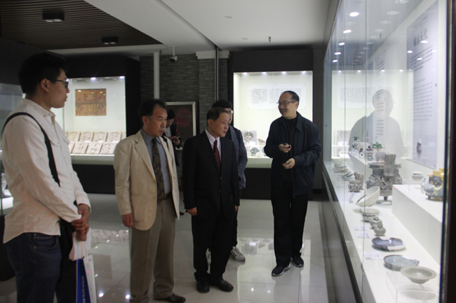 会谈前,代表团一行参观了365官网大观博物馆,艺术设计学院院长魏跃进全程为代表团进行了讲解。