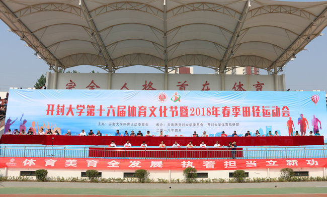 本站讯  4月27日上午,365官网举行第十六届体育文化节暨2018年春季田径运动会。校领导陈灿、储建新、万是明、范金梅、李新春、成芳、曾小平、李治出席了开幕式,体育文化节组织委员会成员、各院部党总支书记、院长及全校14个院部的近4500余名师生参加了开幕式。开幕式由校工会主席成芳主持。