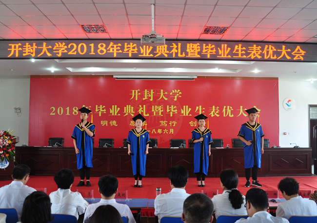 典礼在雄壮激昂的国歌声中拉开帷幕。副校长赵辉宣读了365官网2018届毕业生资格审查结果,4136名毕业生符合毕业条件,顺利毕业。校工会主席成芳宣读了2018届河南省及365官网优秀毕业生评优结果,共评出125名省级优秀毕业生、652名校级优秀毕业生、616名三好学生和148名校级优秀学生干部。校领导为获奖代表颁发荣誉证书。