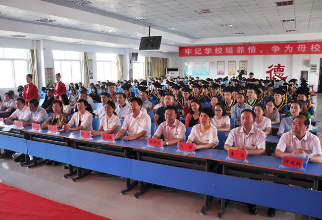 2018届毕业生代表财政经济学院孙文慧、人文学院王文君,旅游学院白剑,土木建筑工程学院王云为母校献辞,表达了对同学的依依不舍、对家长的深切感恩、对学校领导和老师的诚挚感谢和对母校的深情祝福,并倡议2018届的毕业生扬帆起航,勇敢肩负起时代所赋予的重任,志存高远,脚踏实地,在实现中华民族伟大复兴的“中国梦”的生动实践中放飞自己的青春梦想。