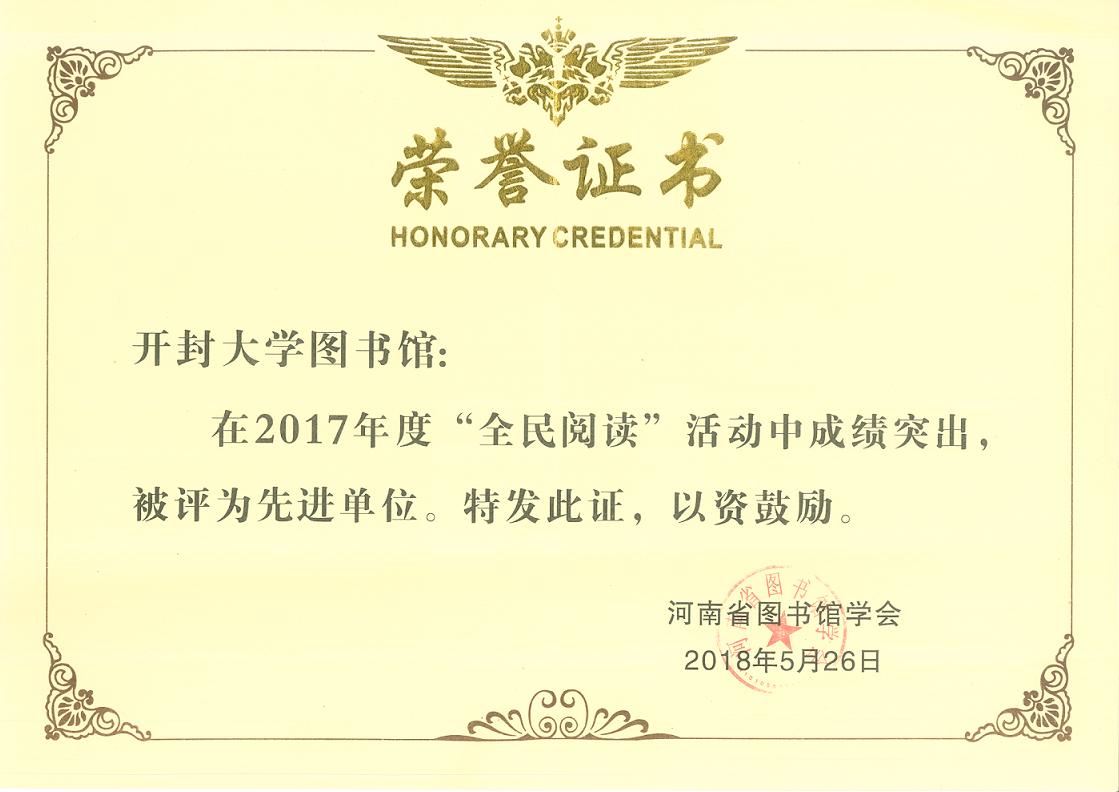 365官网图书馆荣获河南省全民阅读活动先进单位