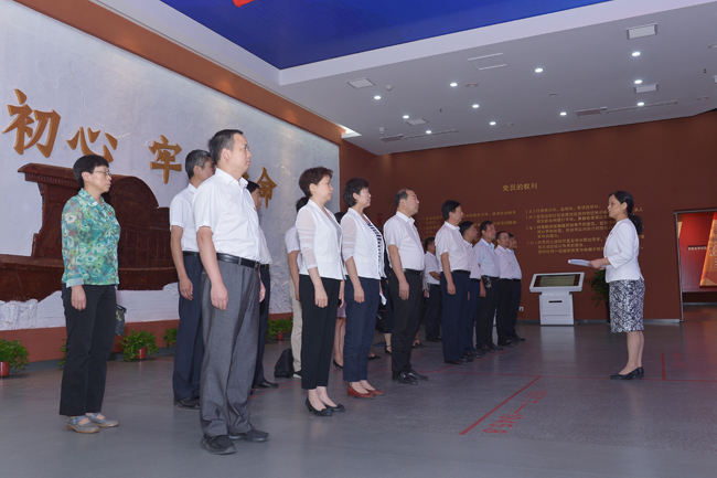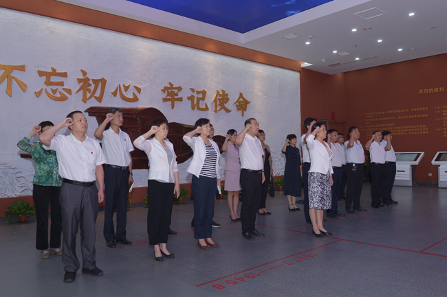 学习结束后,陈书记带领大家重温了入党誓词。大家集体参观了开封市党员政治生活馆。在参观“传承和发扬焦裕禄精神“部分时,陈书记在一个展板处停留,指着展板让大家学习。展板上是焦裕禄同志的一段话:群众在灾难中两眼望着县委,县委领导挺不起腰杆,群众就不能充分发动起来。“干部不领,水牛掉井”。陈书记希望新一届党委和纪委班子能进一步统一思想,以良好的精神状态带领学校朝着既定目标不断前进。