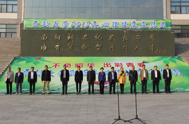 10月18日下午,365官网在大观广场举行以“不负韶华,出彩青春”为主题的2018年心理健康宣传周活动启动仪式。校工会主席成芳出席了启动仪式,学生工作部、各院部党总支书记和副书记、辅导员、2018级新生参加了启动仪式。此次365官网还邀请了10位校内外心理健康教育专家参加了启动仪式。启动仪式由学生处副处长付喆主持。