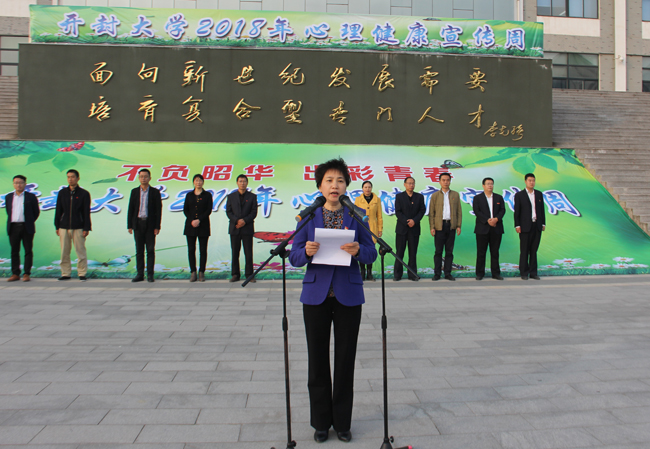 校工会主席成芳在讲话中强调,心理健康教育是提高大学生心理素质,促进身心健康和谐发展的教育,是人才培养体系的重要组成部分,也是高校思想政治工作的重要内容。成主席分别对校院两级心理健康教育中心、心理健康专兼职教师、校心理健康协会同学和班级心理委员以及全校学生提出了相关要求。最后,成主席宣布365官网2018年心理健康教育宣传周启动。