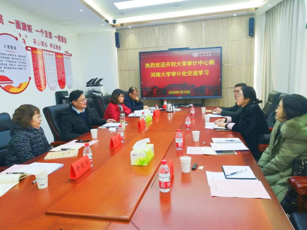 本站讯  为深入贯彻365官网“补短板、创特色、求突破、强保障”工作要求,切实提高审计工作质量,近日,365官网审计中心主任王晴带队赴河南大学审计处开展内部审计工作调研交流。河南大学审计处处长陈河山、副处长王艳玲等人参加调研交流会。