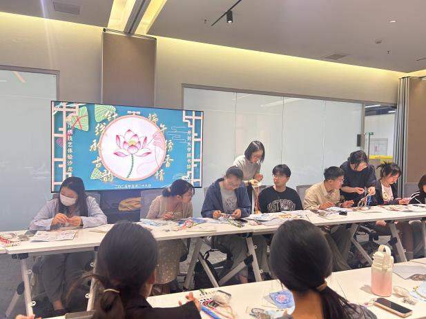 本次活动邀请了艺术设计学院庞未名老师担任主讲嘉宾,来自各院系的30余名师生共同参与了这场别开生面的非遗文化体验活动。活动现场气氛热烈,师生们穿针引线,将传统纹样与端午元素巧妙结合,在体验传统技艺的同时,也深刻感受到了中华优秀传统文化的博大精深。