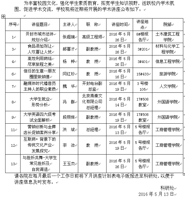 上一条:关于开展师生参加技能大赛获奖项目评选的通知 下一条:关于转发《河南省教育厅关于组建省教育技术装备和实践教育专家库的通知》的通知