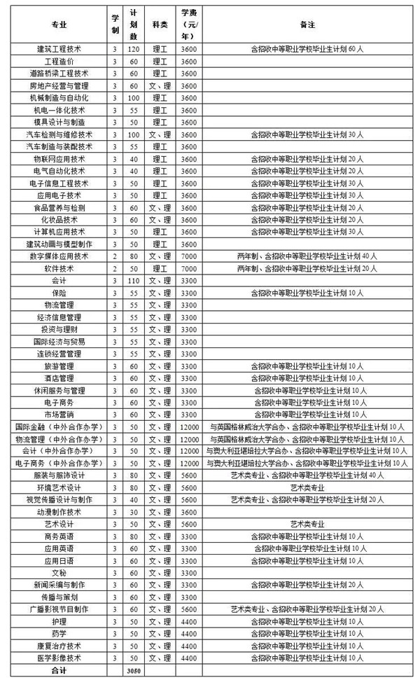 注:招生专业、计划和学费如有变动,以河南省教育厅和河南省物价部门文件执行