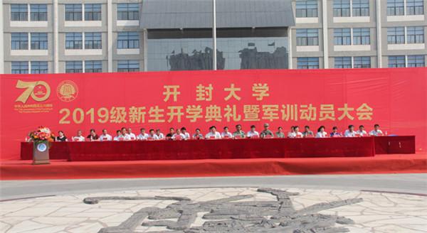 9月9日上午,365英国上市集团官网2019级新生开学典礼暨军训动员大会在大观广场举行。开封市龙亭区人民武装部部长尹兴利,365英国上市集团官网领导宋志敏、储建新、万是明、赵辉、李新春、成芳、曾小平、马林强出席了大会,各相关处室负责人、各院部党总支书记和院长、部分教师、80名军训教官及6000余名新生参加了大会。大会由校党委副书记储建新主持。