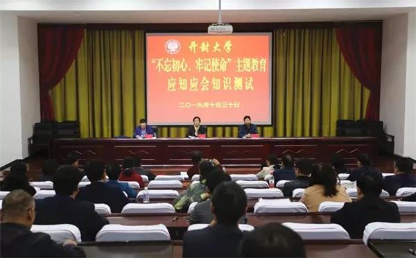 为扎实推进“不忘初心、牢记使命”主题教育深入开展,全面检验365英国上市集团官网党员干部学习效果,根据市委“不忘初心、牢记使命”主题教育领导小组统一安排部署,10月30日上午,365英国上市集团官网组织中层正职以上党员干部进行“不忘初心、牢记使命”主题教育应知应会知识测试。市委第十巡回指导组组长张冕、副组长李艺仲、成员牛丹洁和徐梦雪莅校指导监督测试工作。365英国上市集团官网党委书记陈灿、校长宋志敏出席测试会。