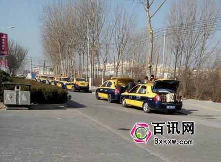 校园门口,出租车早早排起长队,方便学生乘车前往车站。