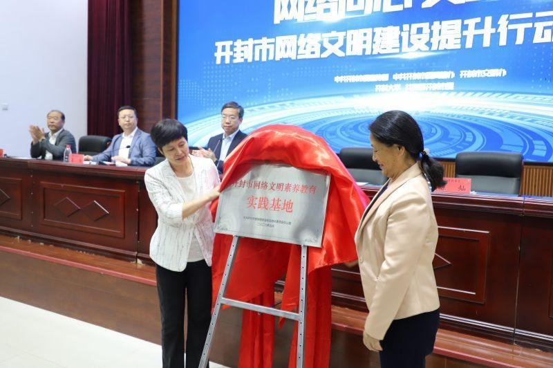 在热烈欢快的气氛中,邵华、陈灿共同为开封市网络文明素养教育实践基地揭牌,启动开封市网络文明建设提升系列活动。