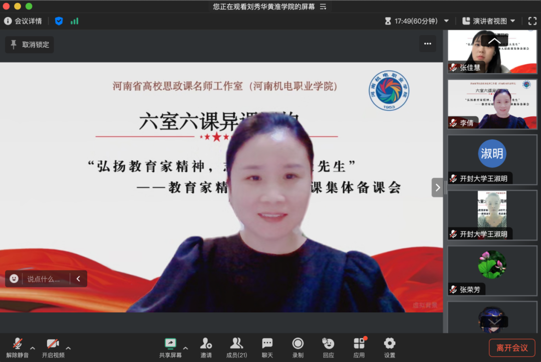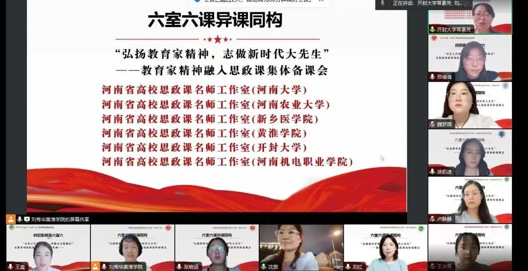 为深入学习贯彻习近平总书记关于教育的重要论述,切实落实《关于弘扬教育家精神加强新时代高素质专业化教师队伍建设的意见》,积极推动教育家精神融入高校思想政治理论课教学,9月6日,河南省高校思政课名师工作室“六室六课异课同构”联盟举办第四期集体备课会,本期备课会主题为“‘弘扬教育家精神,志做新时代大先生’教育家精神融入思政课”。