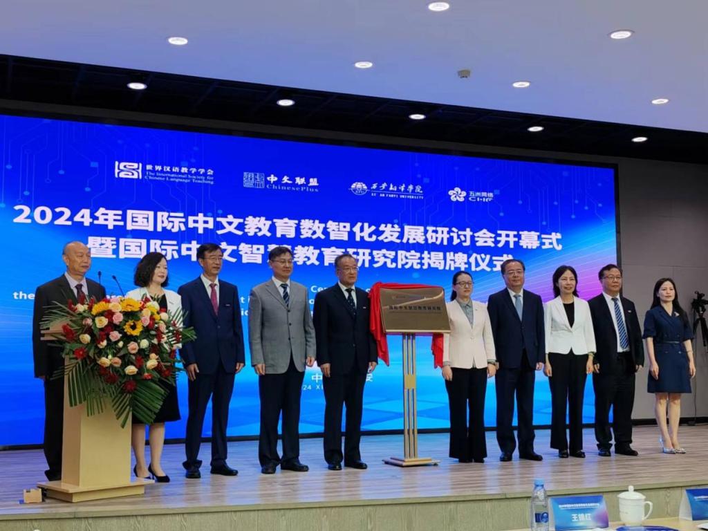 365英国上市集团官网党委书记谭贞出席2024年国际中文教育数智化发展研讨会暨国际中文智慧教育研究院揭牌仪式