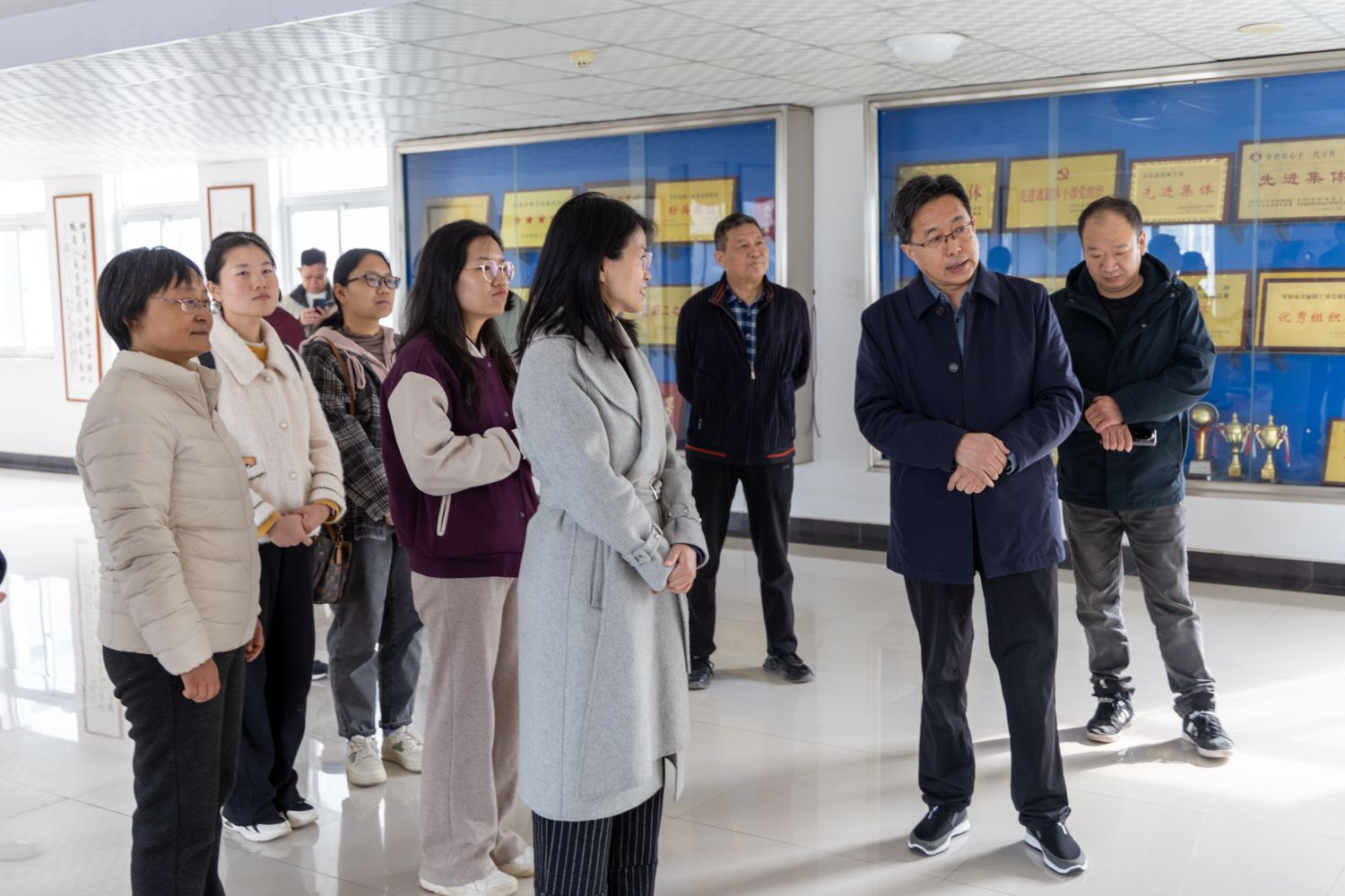 毛成利老师讲述展示柜内获得荣誉奖项