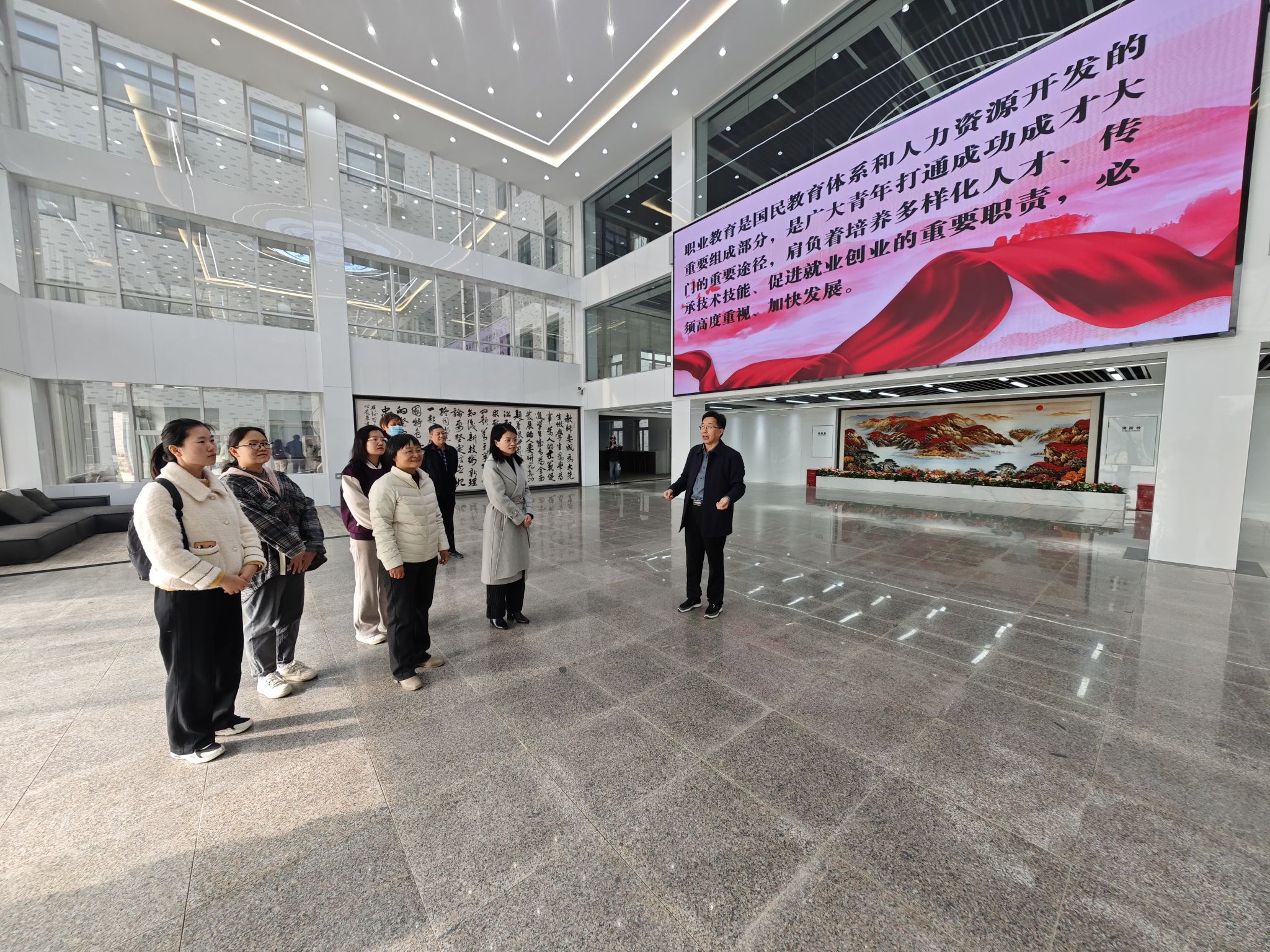 春意盎然,翰墨飘香。3月16日(本周四)上午9时,市委党校马列教研室主任刘善花、副主任王景盼,以及马俊紅、高原、江丹丹、张卫芳、吴宝红、乔波等一行,在365英国上市集团官网马克思主义学院主任左慧琴的陪同下,莅临365英国上市集团官网书画协会文化走廊及毛成利书法创新工作室参观交流,感受书法艺术的魅力,共话中华优秀传统文化的传承与发展。