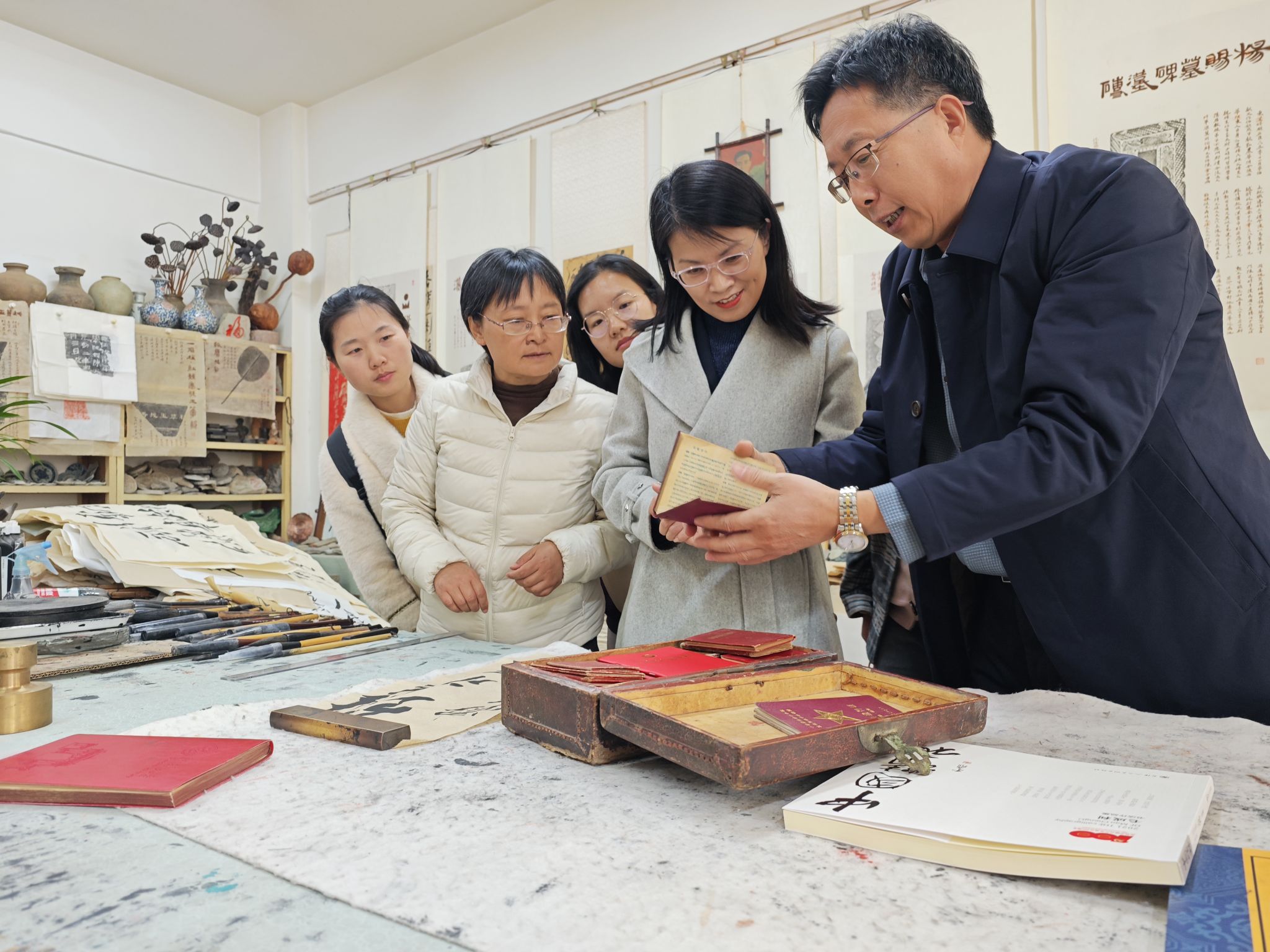 毛成利老师工作室内红色藏品展示交流
