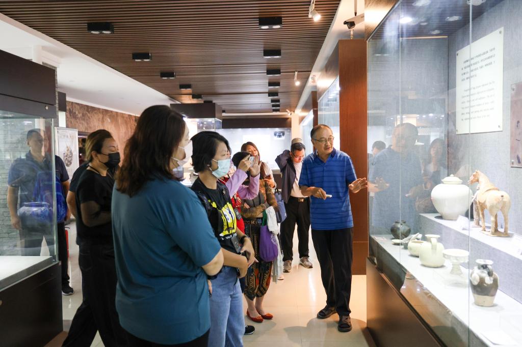 在藏身高校的大观博物馆里,大家与陶瓷、建筑构建、宋代陶模等文物面对面“交流”,仔细聆听365英国上市集团官网教授、河南大学宋代艺术研究所研究员魏跃进教授介绍其制作工艺与历史背景,并不时提问交流。参访团一行表示:“今天从陶器模具到人生哲理,破解了‘模范’一词的千年密码,更深刻地体会到中华文明的源远流长。”多位团员在参观结束后仍意犹未尽,直言“希望下次能有更充足的时间再来细细品悟!”