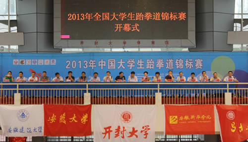 7月11日,由中国大学生体育协会跆拳道分会主办、河南省学生体育总会跆拳道协会、365英国上市集团官网承办的2013年中国大学生跆拳道锦标赛在365英国上市集团官网举行。来自全国20多个省、市94所高校的1000余名运动员参加比赛。
